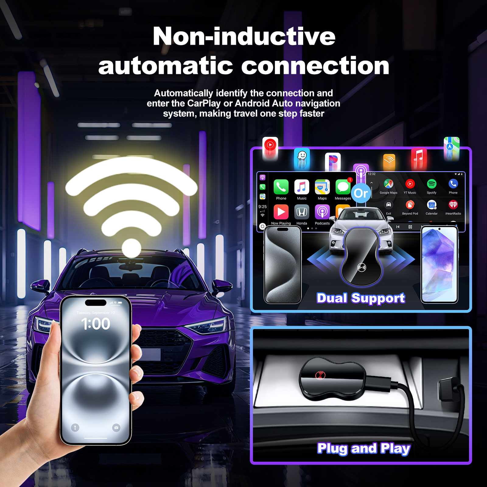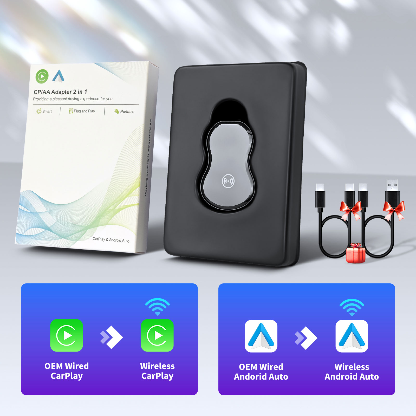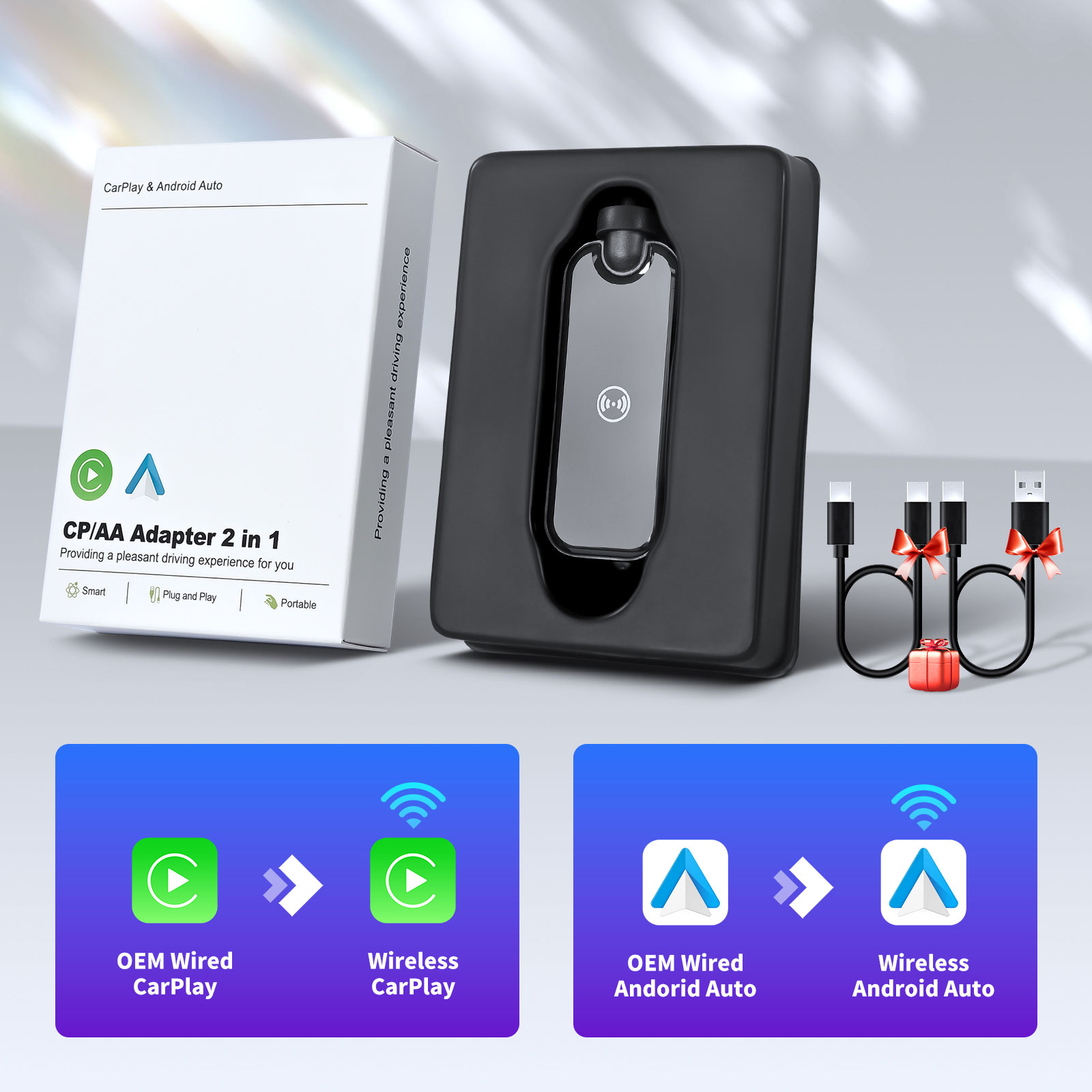 - Wired Carplay/Android Auto to Wireless,CP/AA 2 in 1 Adapter