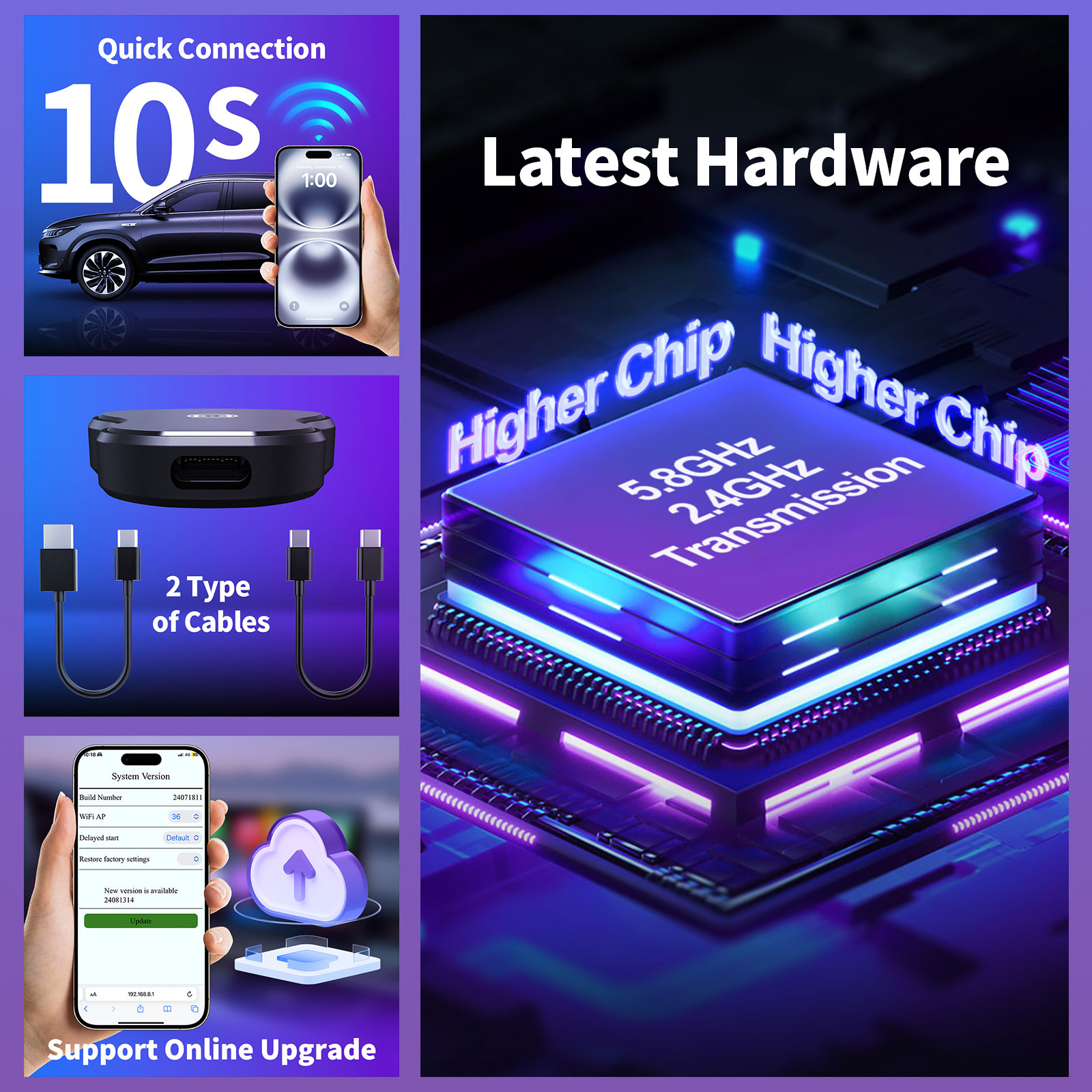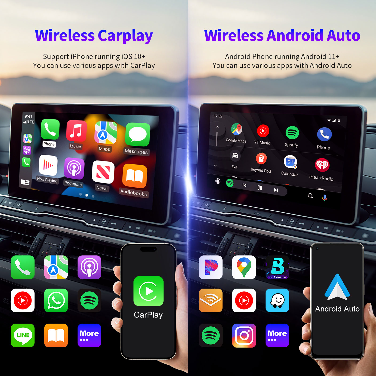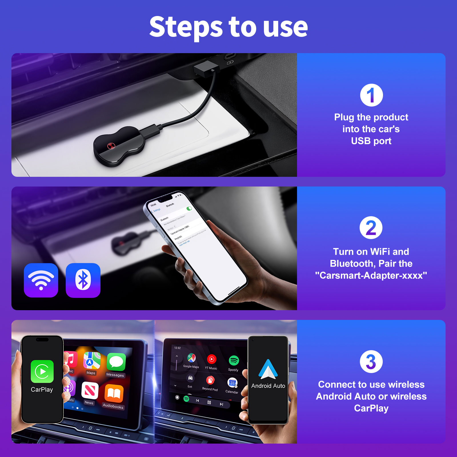- Wired Carplay/Android Auto to Wireless,CP/AA 2 in 1 Adapter